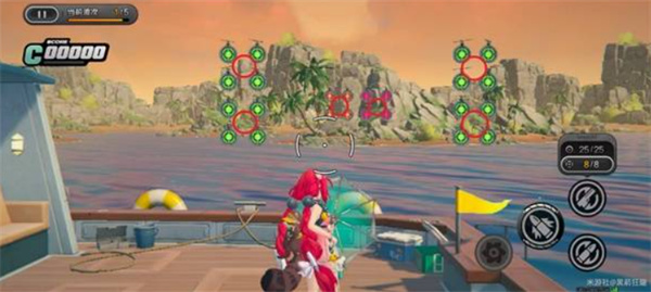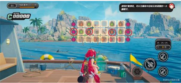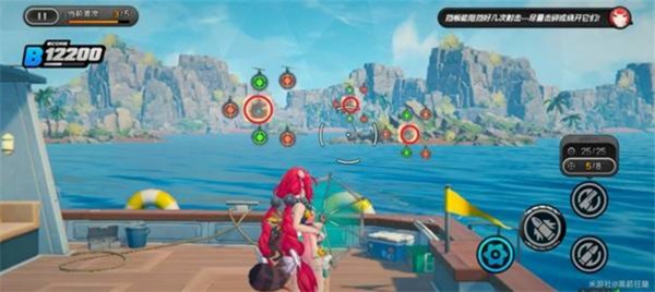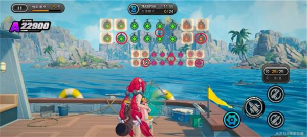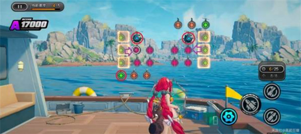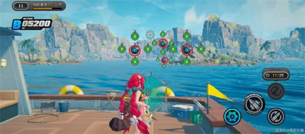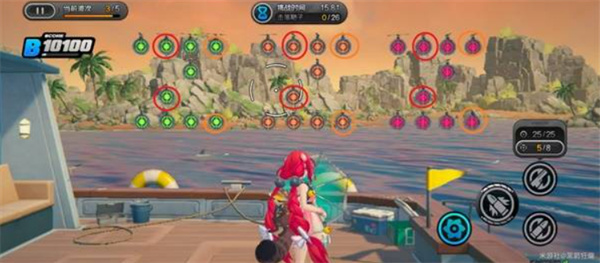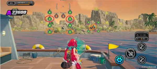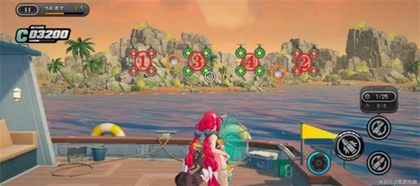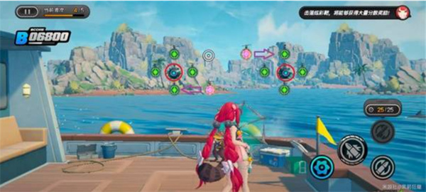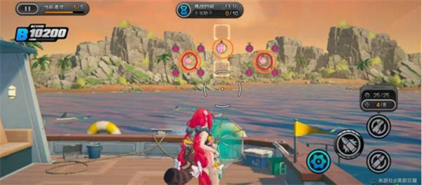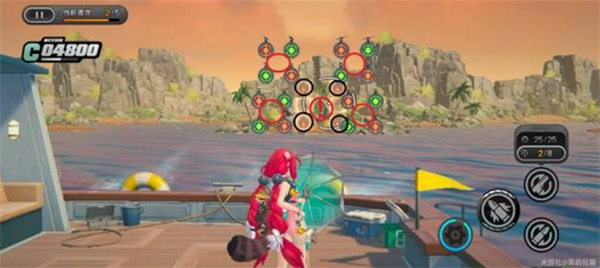 环岛射击活动需要使用【浮波柚叶】进行靶位射击。目标分为彩色靶、绿色靶与橙色靶,其中彩靶得分最高,部分关卡还引入弹药切换机制(常规弹药 / 扩散弹药)。请务必注意靶子的下落顺序和靠近节奏,合理分配弹药击落靶位才能最大化得分。
