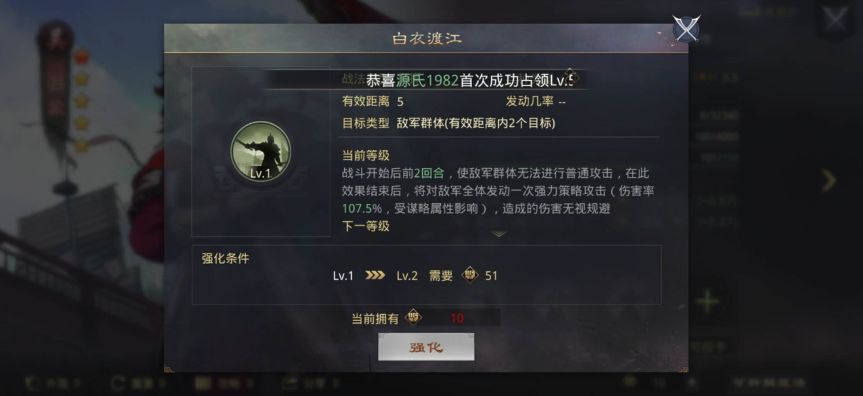 技能等级的提升与武将等级直接挂钩,因此咱们得同步推进角色养成。当武将达到5级和20级时,会分别解锁第二、第三战法槽,这是质变的关键节点。通过扫荡高级野地或城皮能快速积累经验,尤其是六级以上土地,单次收益远超低级地。如果体力充足,优先选择守军强度适中但经验丰厚的目标。练兵系统在名望达到4000后开放,这是无损练级的绝佳方式,尤其适合培养替补武将或新获得的强力角色。