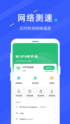 4.WIFI随手连该软件可以让用户详细了解不同的网络速度,连接和使用不同的无线网络。
