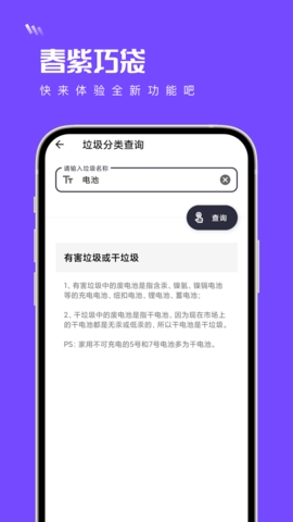 :春紫巧袋手机版是一款快速使用的便捷工具箱软件,可以完美满足您提取文案、识别数字、垃圾分类等功能需求。使用各种常用小工具非常方便,并且会定期更新新功能。界面简洁,小功能的设置操作也一目了然。它为您在许多领域提供帮助。欢迎有需要的朋友下载。