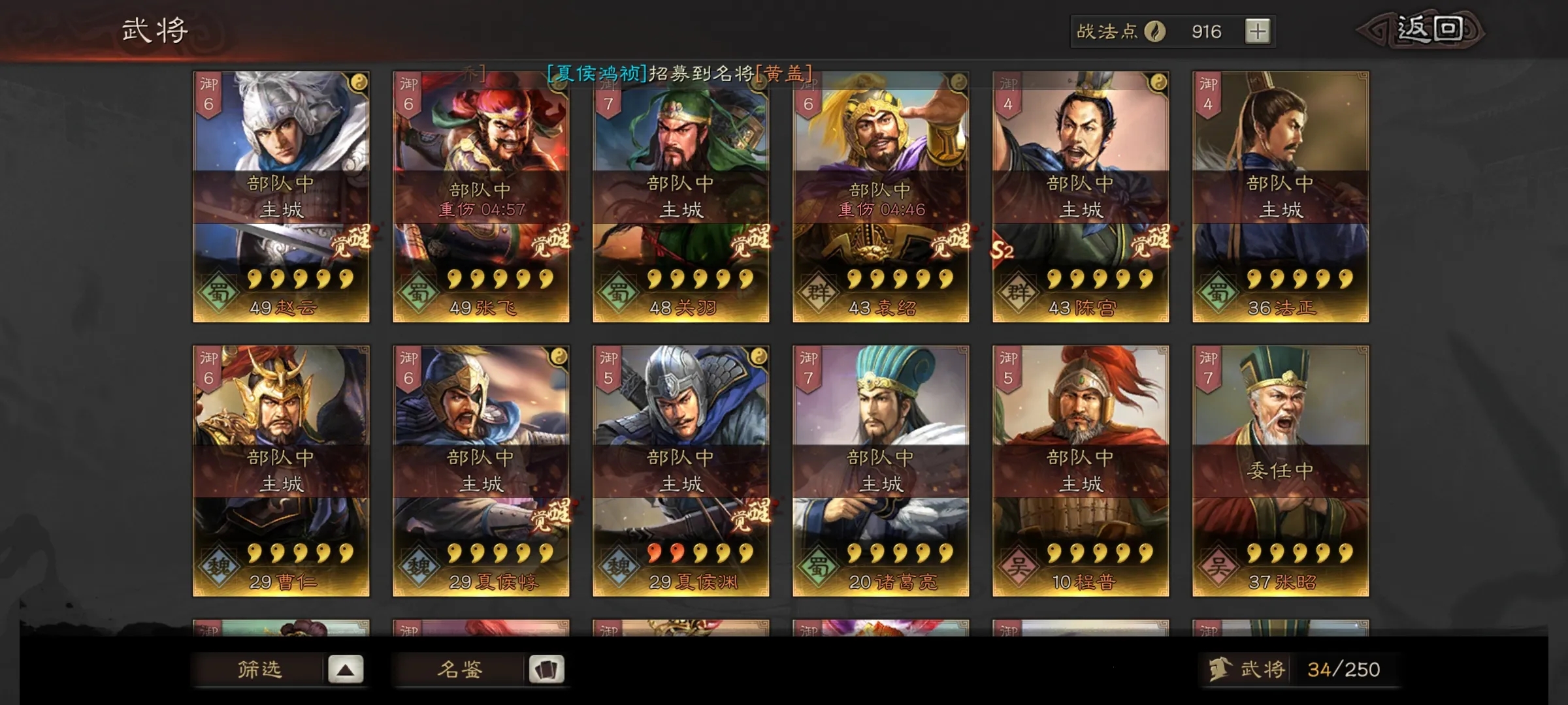 出关是玩家从出生州进入资源州的关键阶段,标志着游戏从中期转向后期争霸。要顺利出关,首先需要确保主力队伍达到30级并配备完整的战法和兵书。主力队伍通常由三名武将组成,建议优先选择开荒效率高的组合,例如刘备、张飞或赵云等稳定性较强的武将。战法点储备需充足,建议在新赛季开始前通过赛季末屯卡提前准备,紫卡和蓝卡是战法点的主要来源。兵书系统在20级和30级分别解锁两层,合理搭配兵书能显著提升队伍强度,例如虚实系的神机兵书可为慢速武将提供首回合先攻优势。