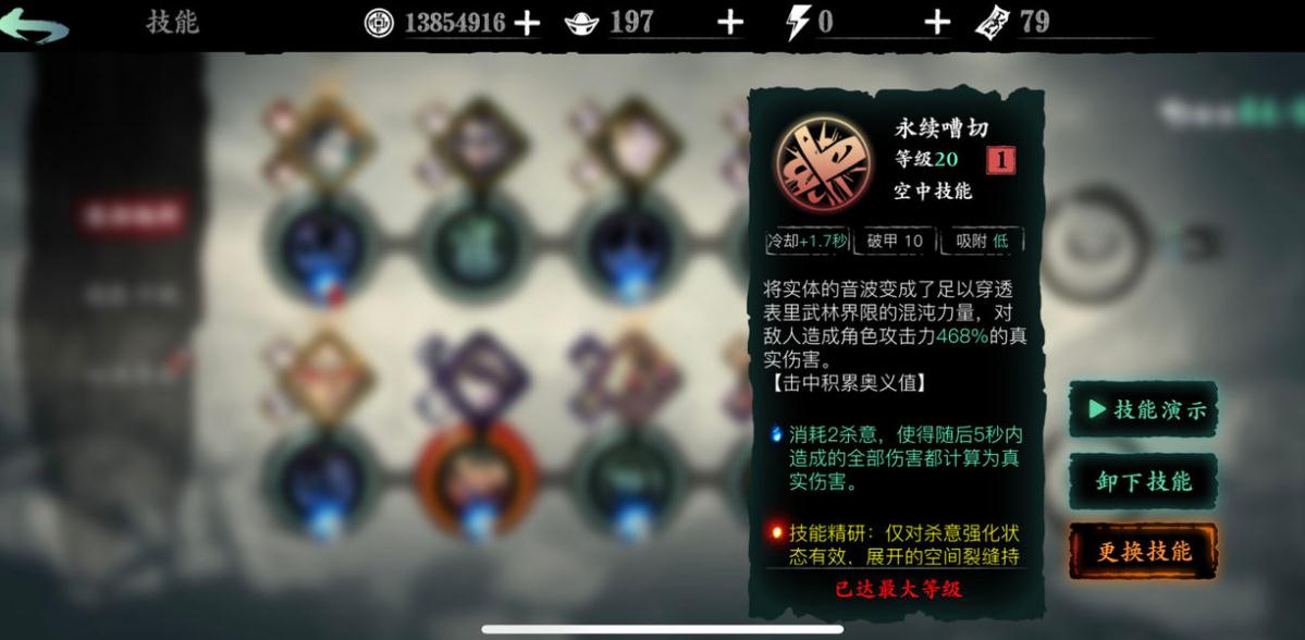 技能链构建需注重杀意消耗与冷却缩减的平衡。主链推荐巨刃波、火龙卷、白剑玄的暴击组合,副链选择上官斩、黑剑玄补充控制。心法配置上,芳华邪后紫一品质可减少技能冷却,白衣留情能重置燕返技能,黑暗本源则对受控敌人附加15%真实伤害。需注意炽焰斩技能自带百分比减伤效果,这是赤焰生存能力的核心保障。技能精研应优先点满进阶技能,再考虑基础技能强化。