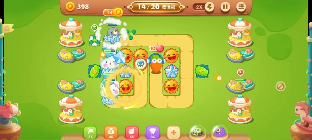 合理选择炮塔类型是通关的核心,推荐使用高伤害的火箭炮塔和能减速的冰冻炮塔组合。火箭炮塔对付成群的怪物效果很好,冰冻炮塔能延缓怪物移动速度,给其他炮塔争取更多攻击时间。咱们还可以搭配些范围攻击的太阳花炮塔,清理道具的同时也能打击怪物。记住不要盲目升级同一种炮塔,根据怪物类型灵活调整,遇到速度快的小怪就优先升级冰冻塔,血厚的BOSS出现时集中火力提升火箭塔。