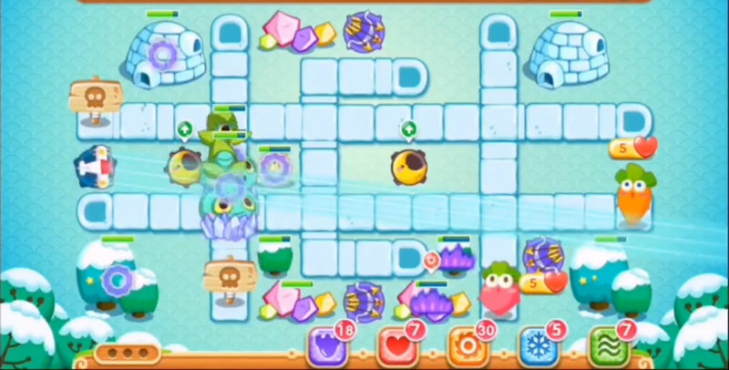 游戏进入中期后,工作重心应转向系统性地清理道具并完成隐藏任务。本关的15个隐藏炮塔主要隐藏在绿色的冰棍和救生圈道具中,使用升到顶级的太阳花炮塔来清理这些道具效率最高。当所有隐藏炮塔都被找出后,接下来需要在规定时间内清除掉地图上的5个红色大冰棍。在此过程中,应持续用获得的金钱升级已部署的炮塔,例如将火箭和多重箭升至顶级,以应对逐渐增强的怪物波次,并留意从道具中炸出的鱼刺、飞机等炮塔,将它们纳入防守体系。