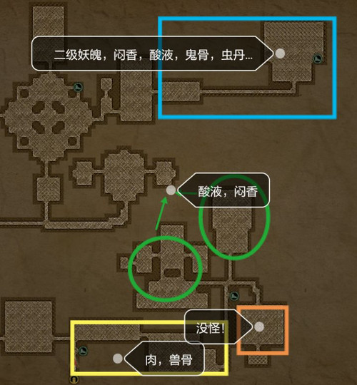 正常通道里都有小怪…基本跟区域相符,就不标了。图一还产出虫翎,在虫丝那个过道上,不过掉率很低…所以还是跟商人换吧~或者去其他图,图二貌似有出!
